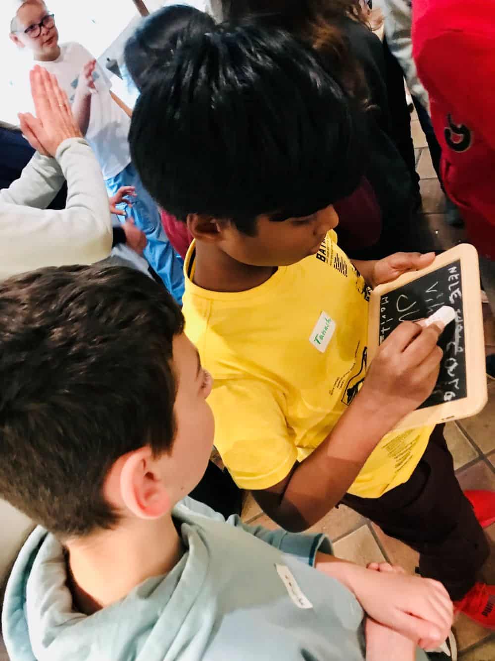 Gemeinsam sammeln wir Ideen, dann schreibt jede*r – allein oder zu mehreren – und am Schluss gibt es eine Vorleserunde. Dazwischen spielen wir und machen Ausflüge, immer auf der Suche nach schreibstarken Ideen.
